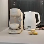 Apartament obejmuje aneks kuchenny z czajnikami elektrycznymi, lodówką i płytą grzejną. 20 km dzieli 1-pokojowy Romantic Stay With Bathtub By Downtown Apartments od lotniska Gdańsk im. Lecha Wałęsy.